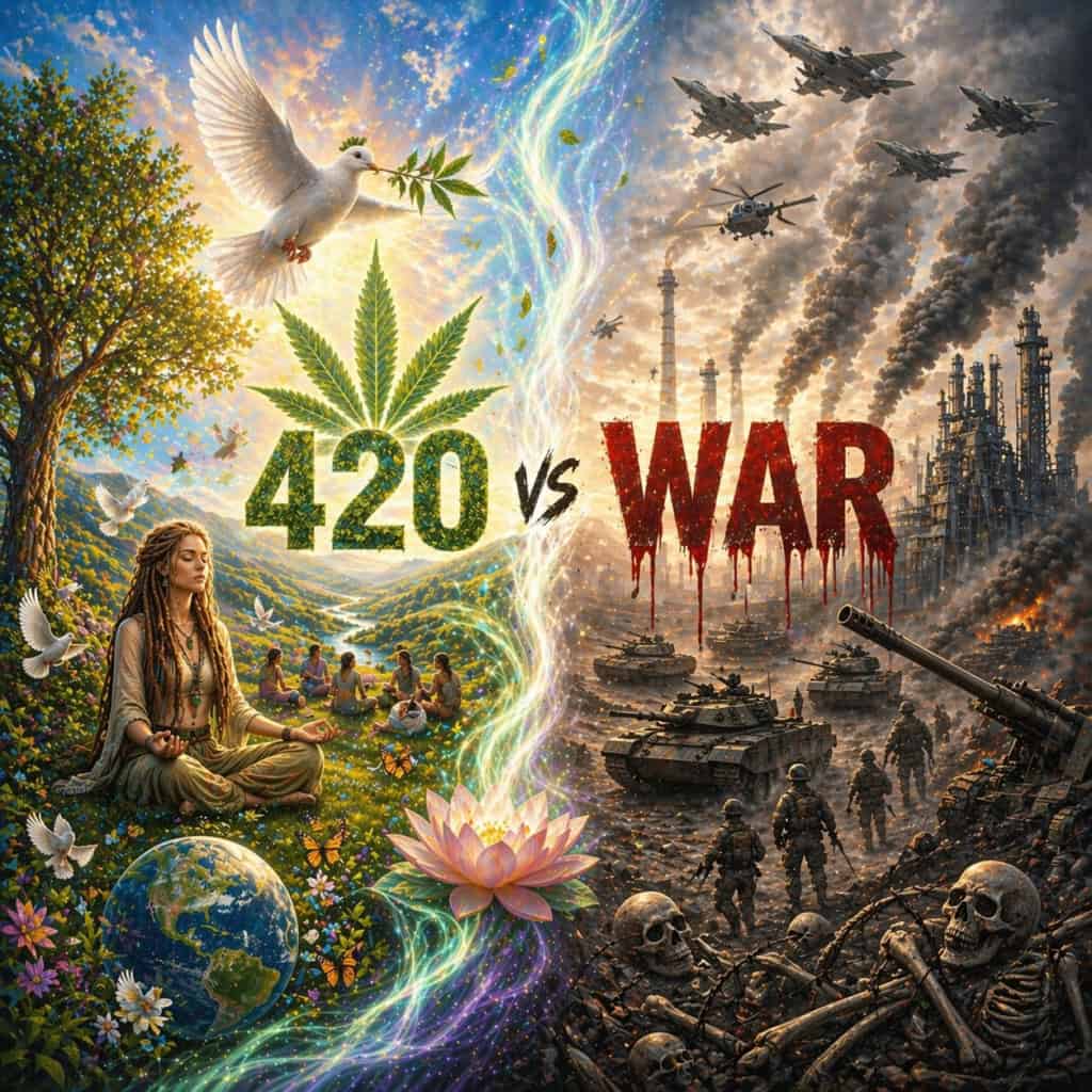 I en opinionsartikel publicerad på Cannabis.net tecknas en skarp kontrast mellan två krafter som, enligt skribenten, formar vår samtid: ett framväxande “420-medvetande” och det som beskrivs som en global krigsmaskin. Texten argumenterar för att dessa två fenomen inte bara existerar parallellt – utan står i direkt konflikt med varandra.