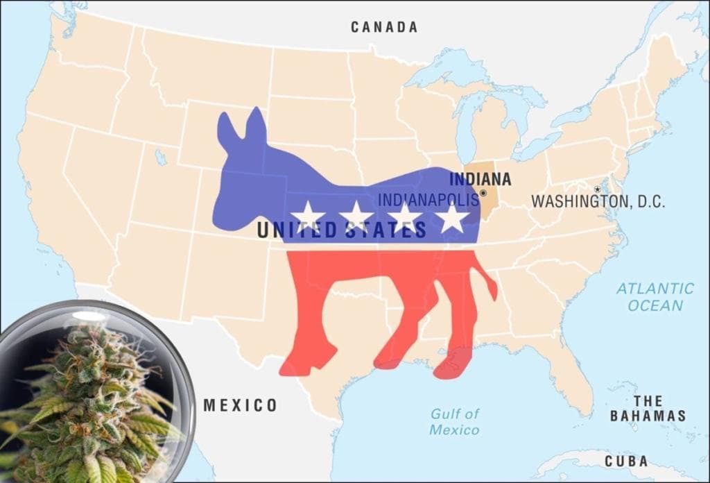 Mike Schmuhl, ordförande för det demokratiska partiet i Indiana, sade i tillkännagivandet att Indianas väljare har tittat på sina grannar för att erkänna fördelarna med legalisering, med de andra staterna i mellanvästern Illinois och Michigan som båda har avskaffat förbudet mot hasch inom sina respektive gränser.