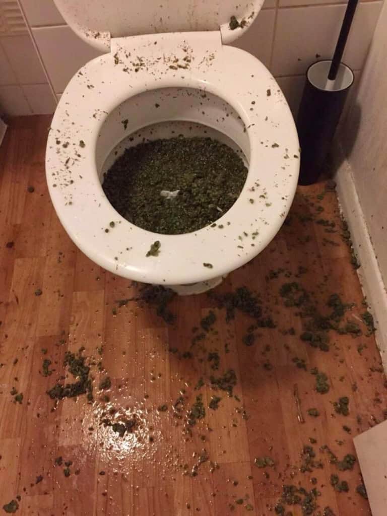 Denna strategi i sista minuten hade kanske fungerat om det bara var en joint, men Griffin hade tydligen omkring 47 pund knoppar i sitt hus. Det mesta av detta gräs var redan förpackat i förseglade plastpåsar, så försöket att förstöra bevismaterialet gick inte riktigt bra. Efter att ha genomsökt huset hittade polisen också ytterligare flera påsar med knark, en pistol och 12 600 dollar i kontanter i rymlingens bil. Polisen släpade ner honom till stationen, där US Marshals delgav honom nästan ett dussin utestående häktningsorder.
