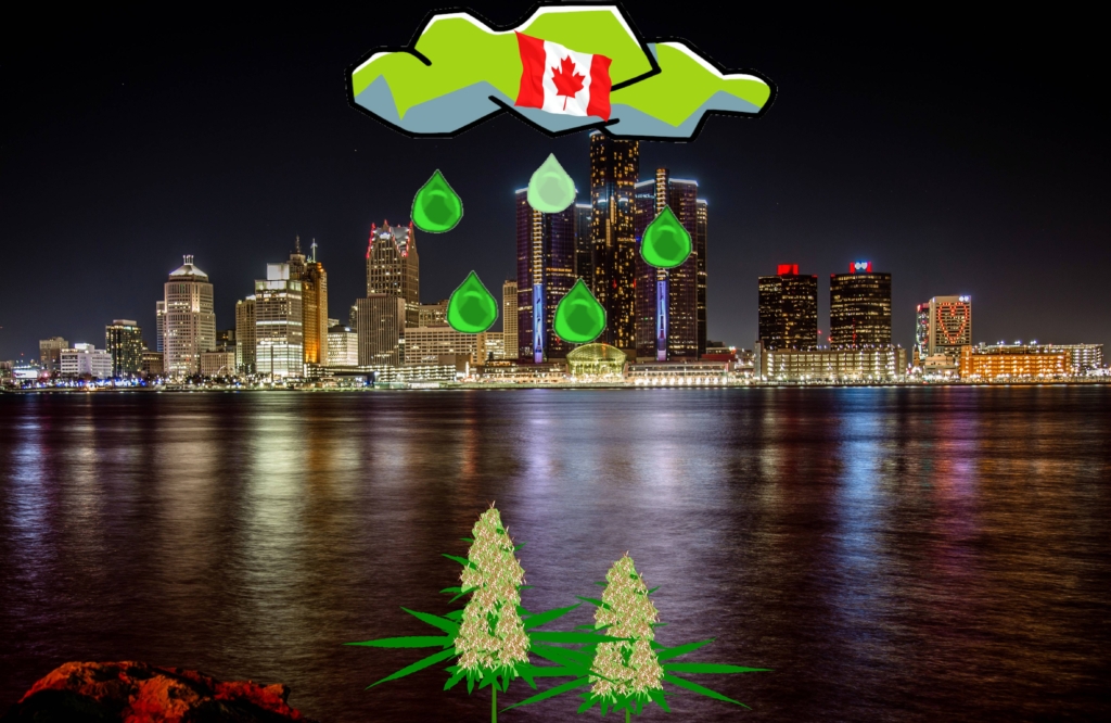 En observation som Stentz gjort understryker närheten mellan olika cannabissystem: ”Det är fascinerande att du kan sitta där och titta in i delar av landsbygden i Ontario från Michigan, du kan titta över vattnet, oavsett om det är Lake St. Clair eller Detroit River, och du kan mitt i natten se glöden från dessa växthus som i princip bara massproducerar det här på daglig basis.”