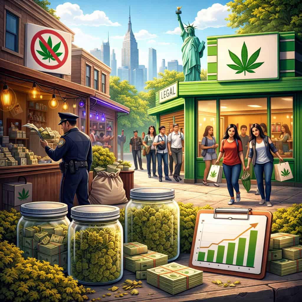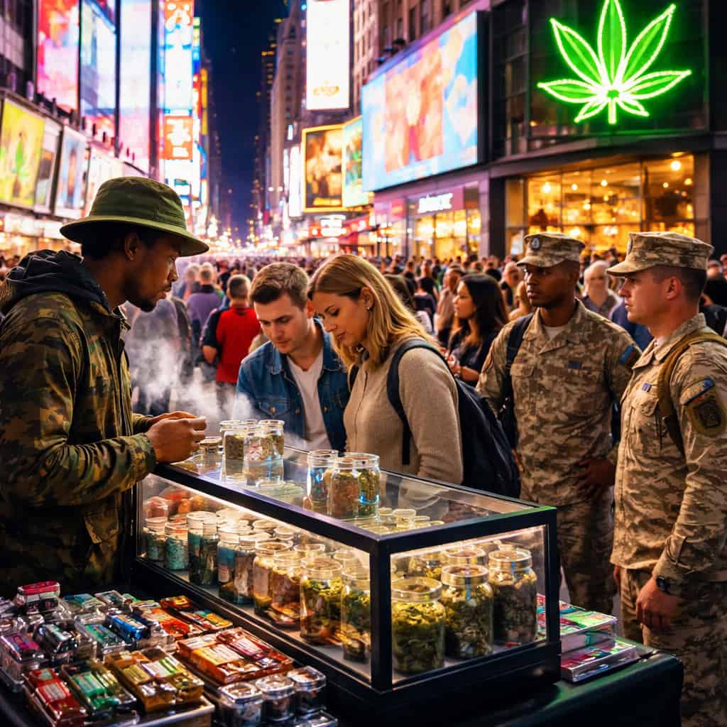 Mitt i Times Square—där utklädda Elmos jagar dricks och turister väjer för selfiepinnar—finns nu en ny sorts “uniform” på gatorna. Cannabis. Inte den lagliga, polerade dispensary-varianten med snygg branding och vakter. Något lösare. Högljuddare. Mer kaotiskt. En svärm av olicensierade säljare, popup-handlare och butiker som ser legitima ut—tills man tittar lite närmare. Vissa kallar det …